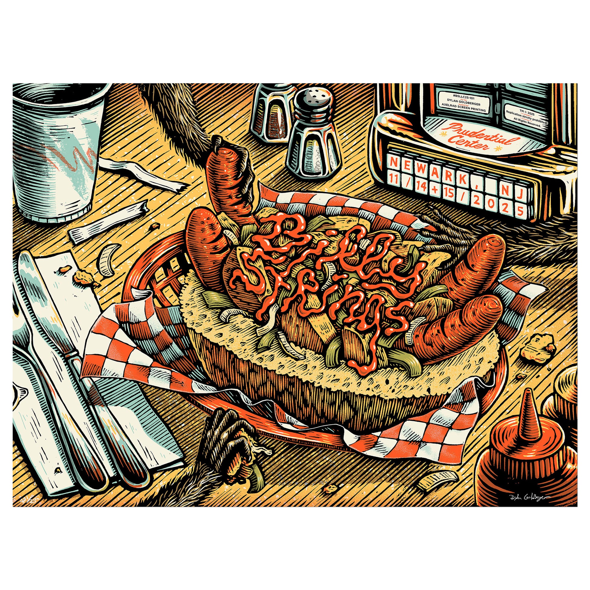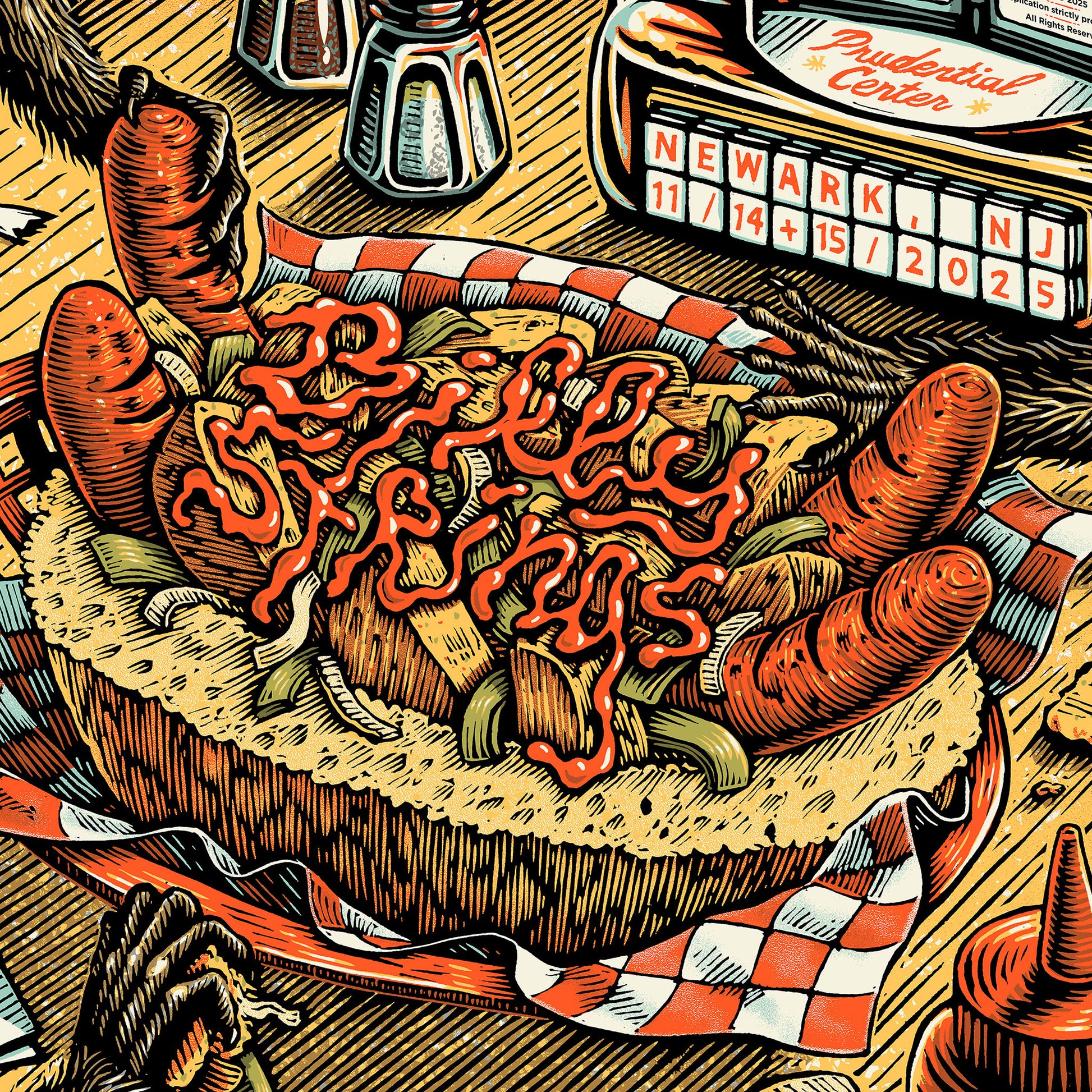 Official screenprinted poster for Billy Strings' November 14+15, 2025 show at Prudential Center in Newark, NJ.