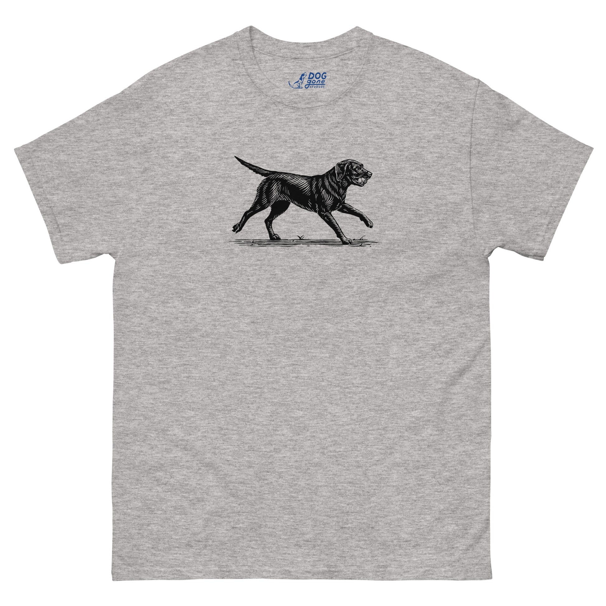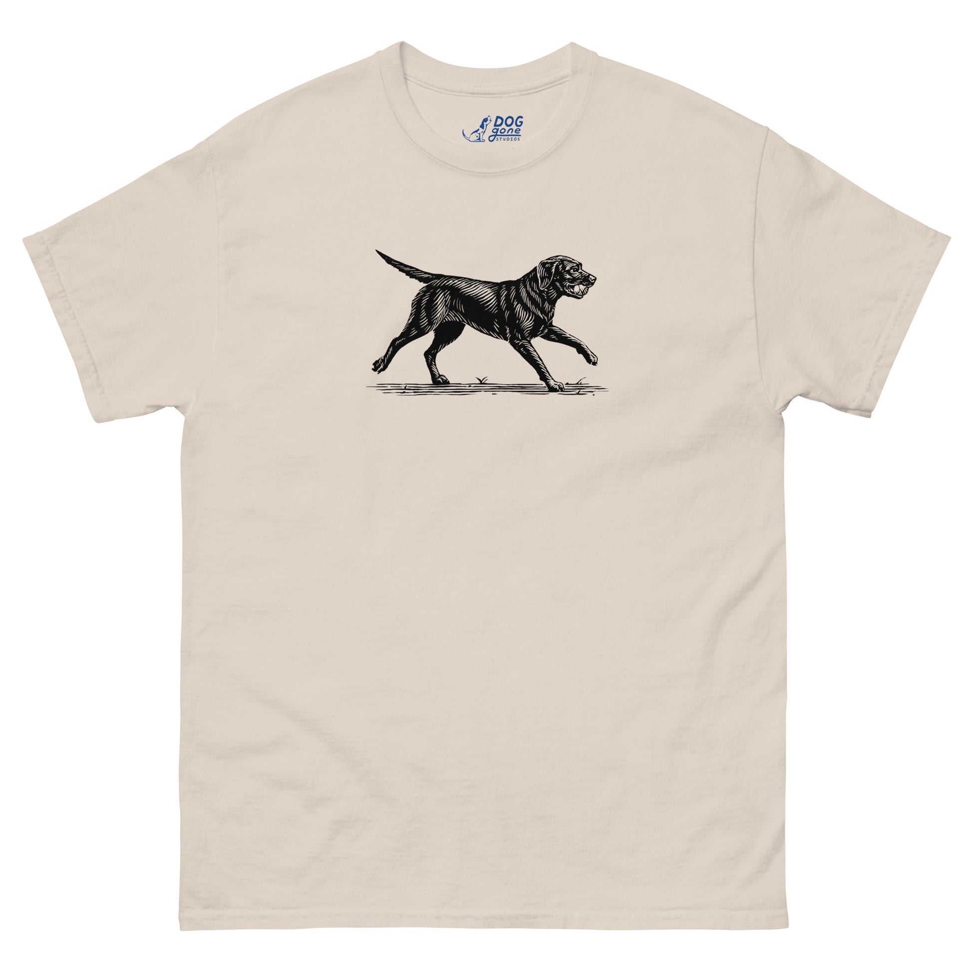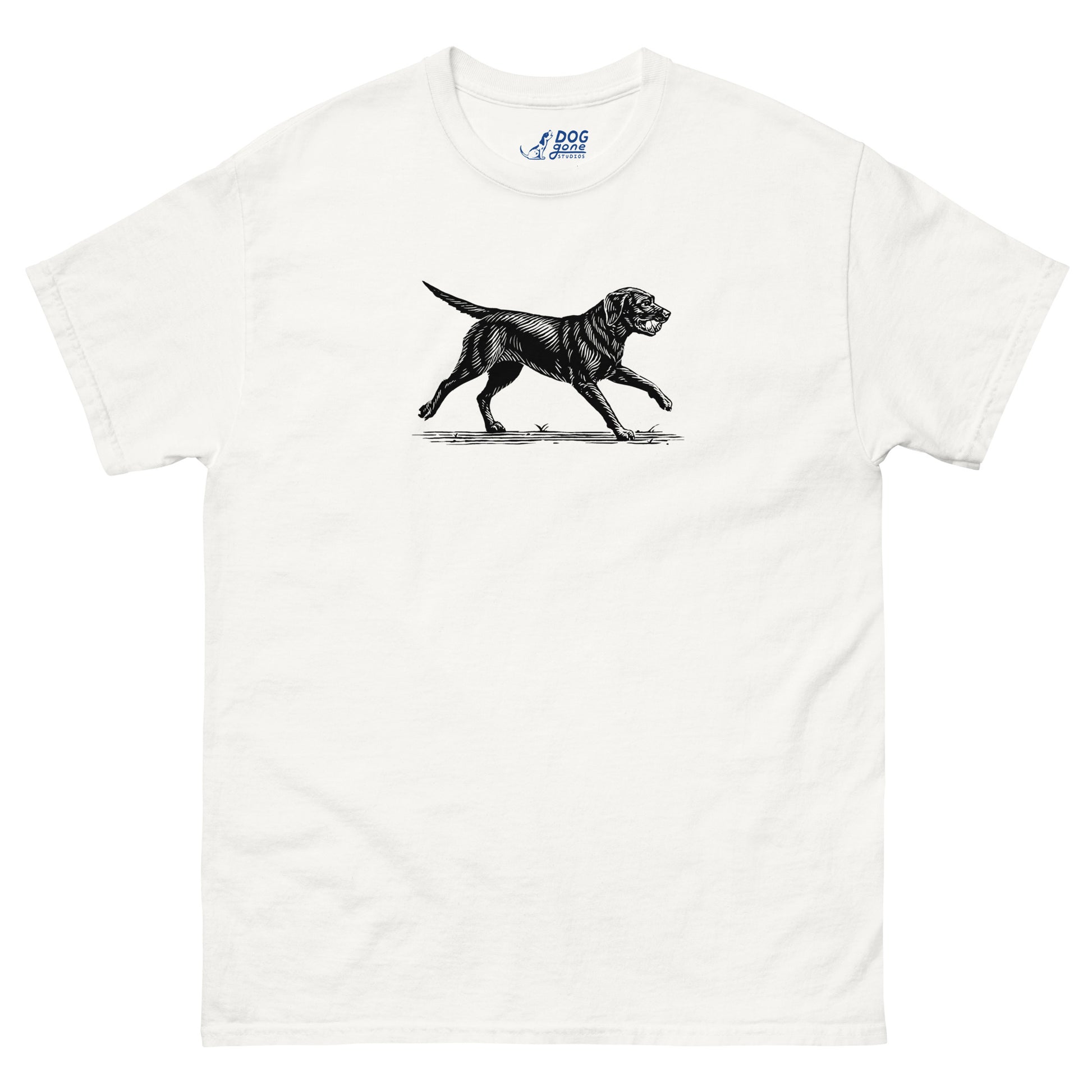 Did you know that Black Labs were trained to have a "soft mouth," allowing them to carry things in their mouths without causing damage? Originally bred to retrieve game without harming it, Labrador Retrievers are known for their love of fetch, which is exactly what this t-shirt captures.