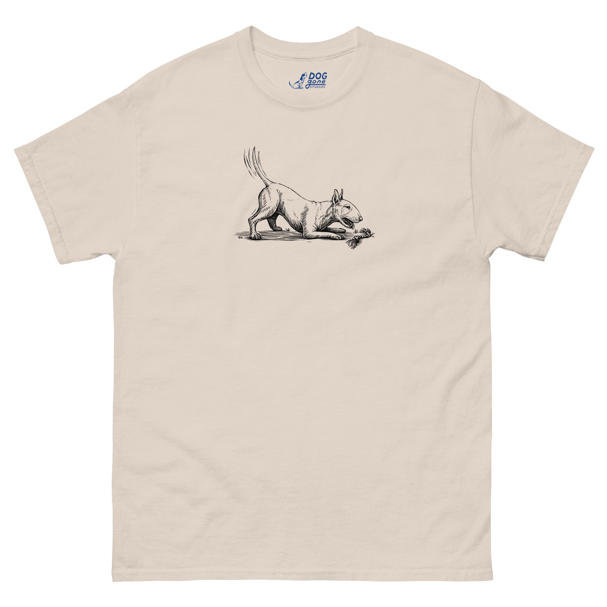 Did you know that Bull Terriers are one of the few dog breeds with triangular eyes, giving them a unique and expressive appearance? If you own this dog breed, you're familiar with their distinctive egg-shaped heads and playful personalities, qualities that are beautifully depicted in this T-shirt.