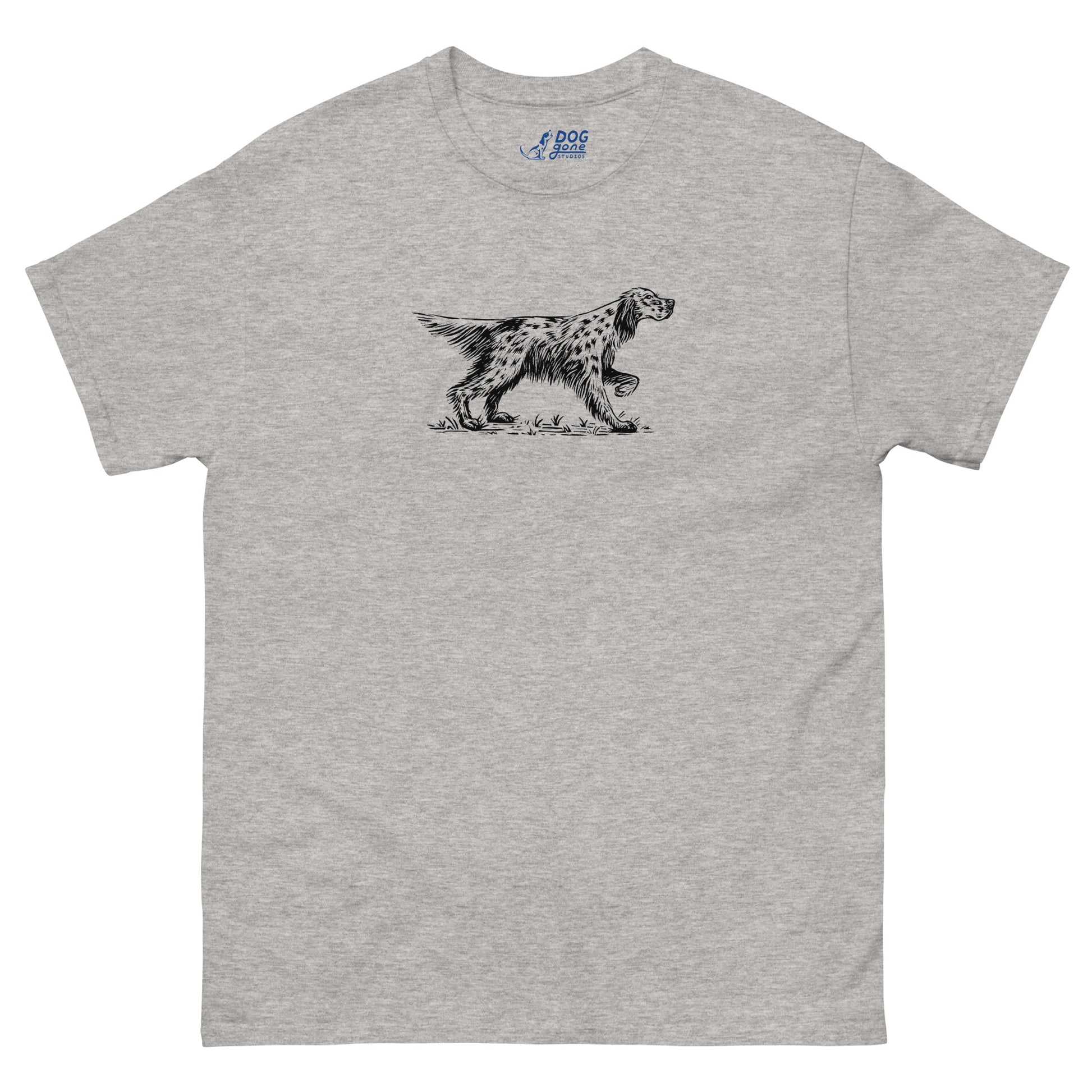 Did you know that English Setters were originally bred as bird hunters in England 400-500 years ago? If you own this dog breed, you’re likely familiar with their setting pose, an instinctive crouched pointing stance captured in this T-shirt.