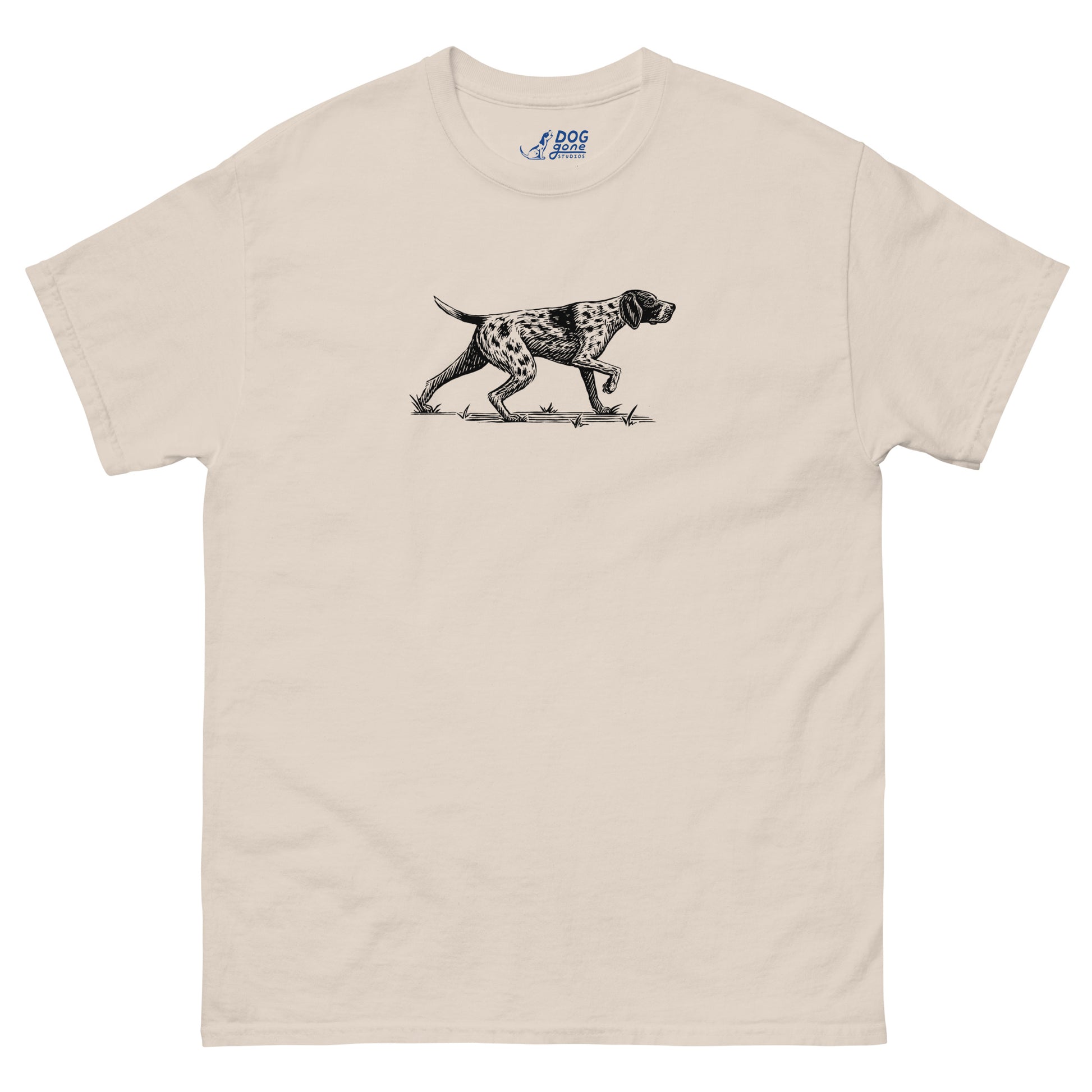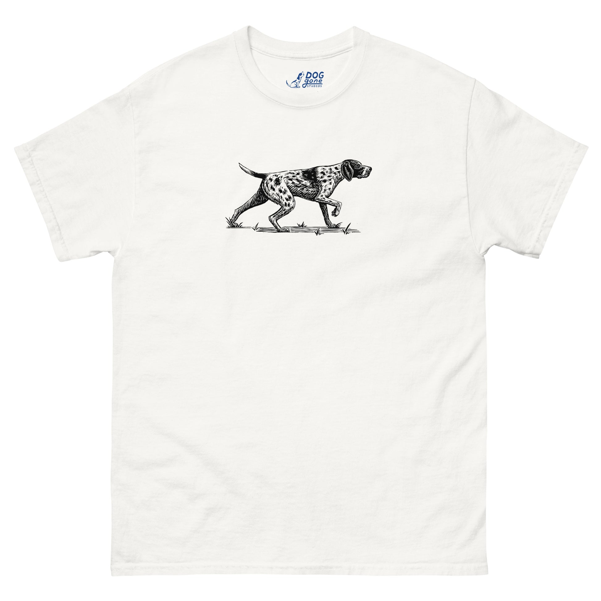 Did you know that German Shorthaired Pointers were developed in Germany in the mid-19th century to be extremely athletic and intelligent hunters that retrieved game both on land and in the water? If you own this dog breed, you’re familiar with their instinctive arrow-like pointing pose, beautifully captured in this T-shirt.
