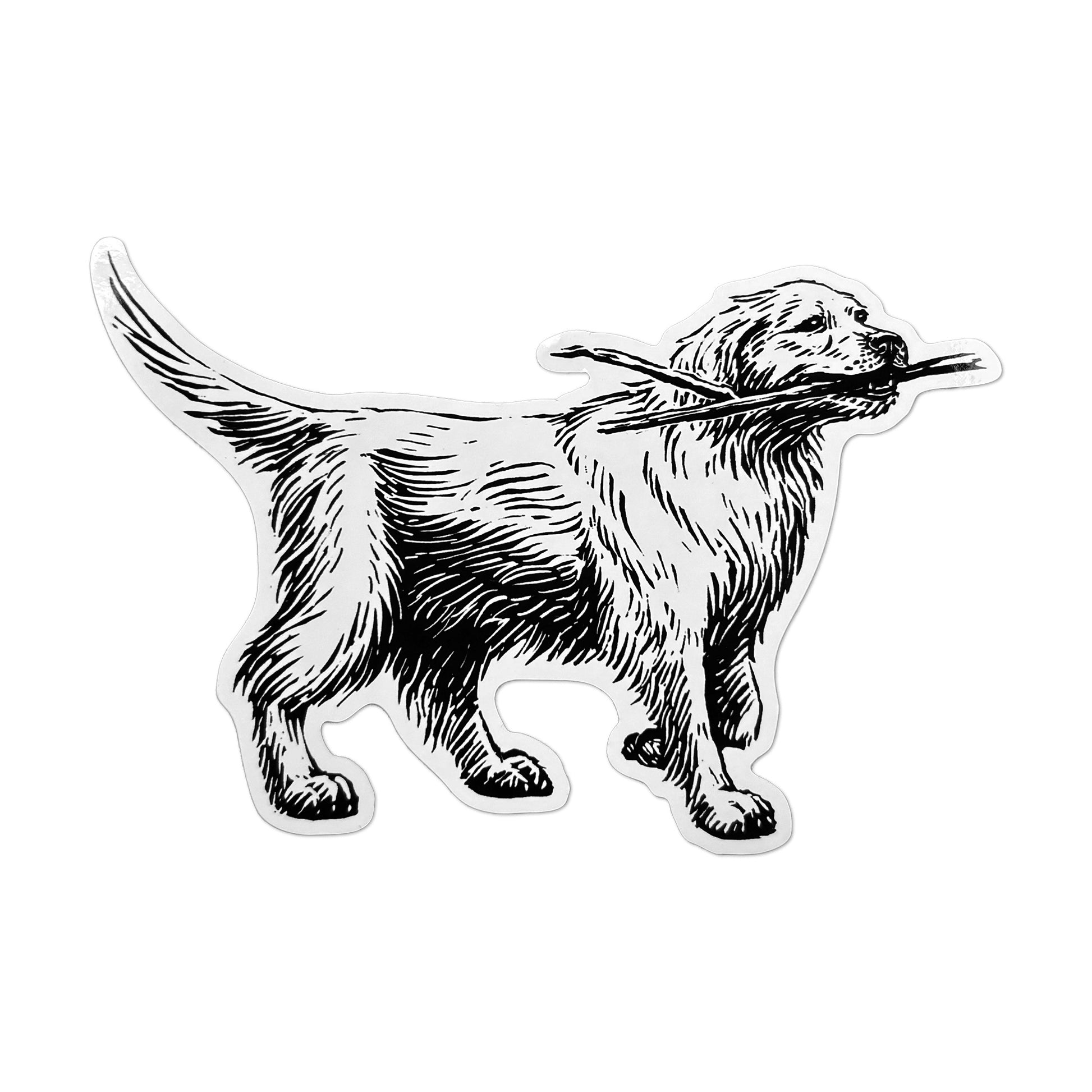 A durable vinyl sticker featuring a Golden Retriever, illustrated by Dylan Goldberger. A great way to add some personality to your water bottle, laptop, or whatever else isn't already covered in dog hair!