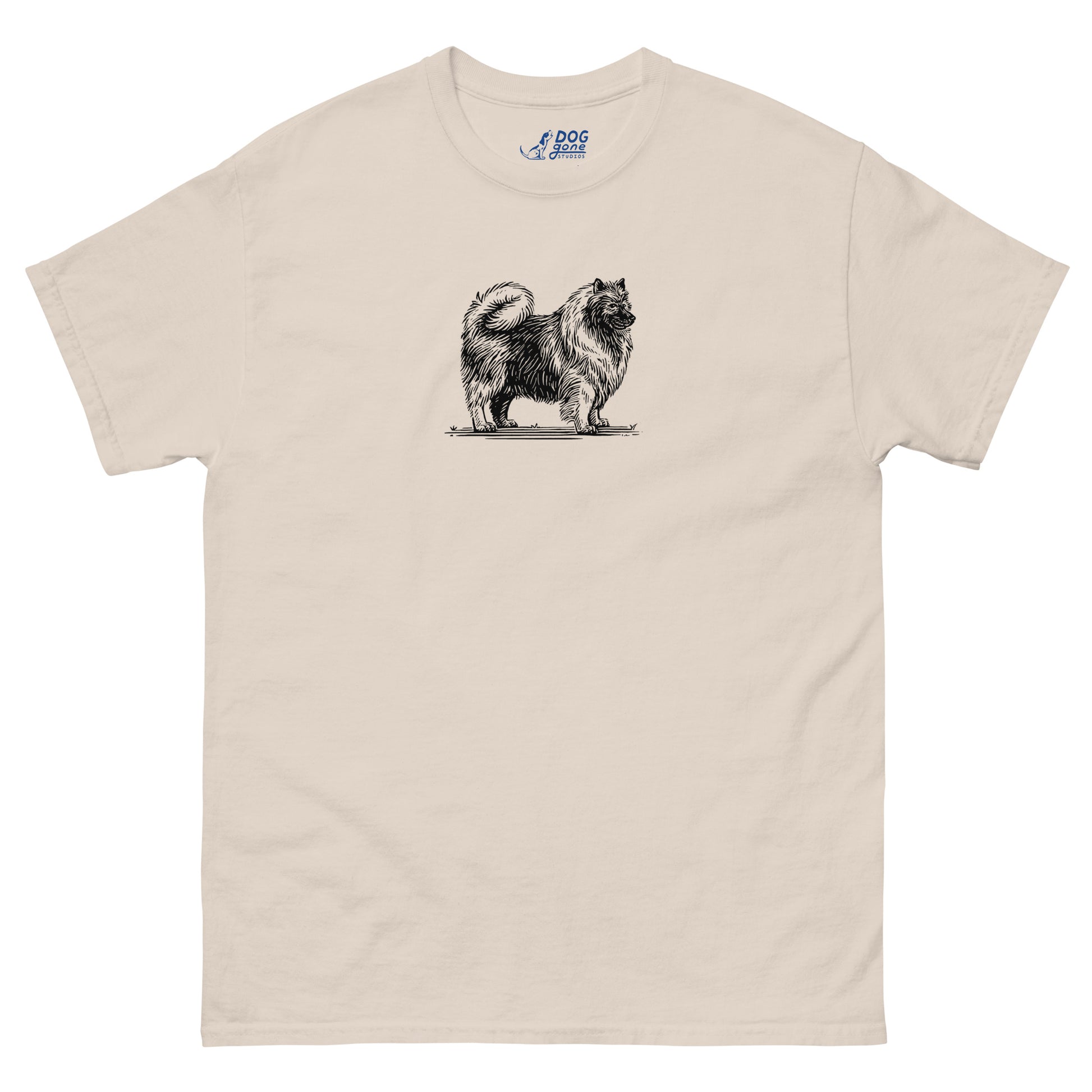 Did you know that Keeshonds are known for their distinctive 'spectacles'—facial markings that resemble glasses? If you own this dog breed, you're likely familiar with their friendly and affectionate nature, qualities that are beautifully captured in this T-shirt.