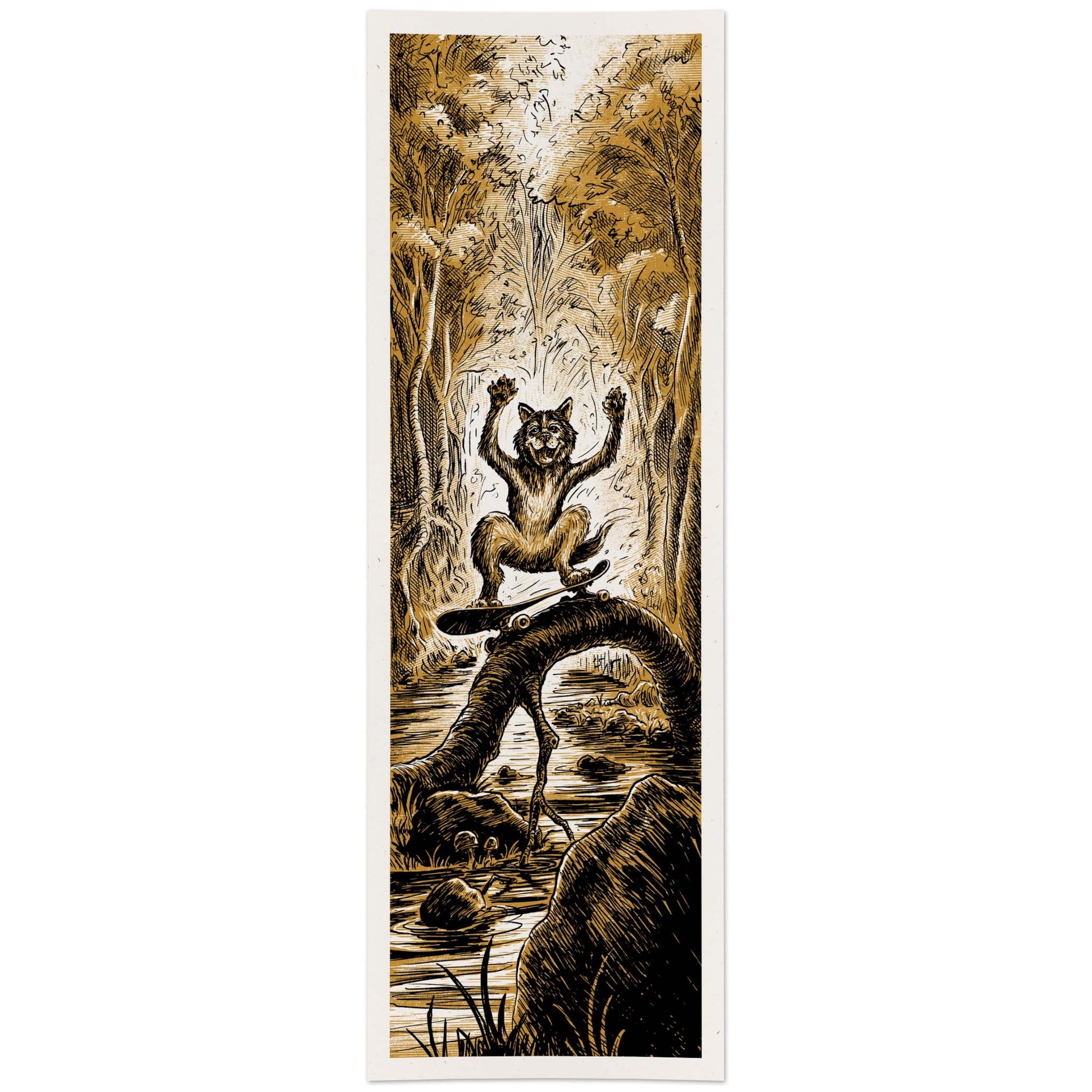 - Handcrafted Art: Illustrated and handprinted by Dylan Goldberger.